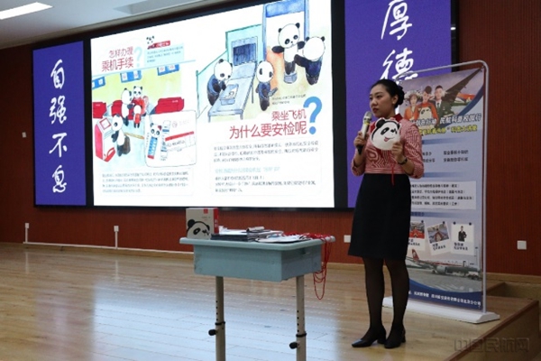“走近最美‘国门’护航人”专题讲座。通过首都机场贵宾公司‘国门大使’,与观众分享了发生在她们身边的感人故事,带大家了解基础的乘机常识,传递了中国民航“真情服务”的理念。
