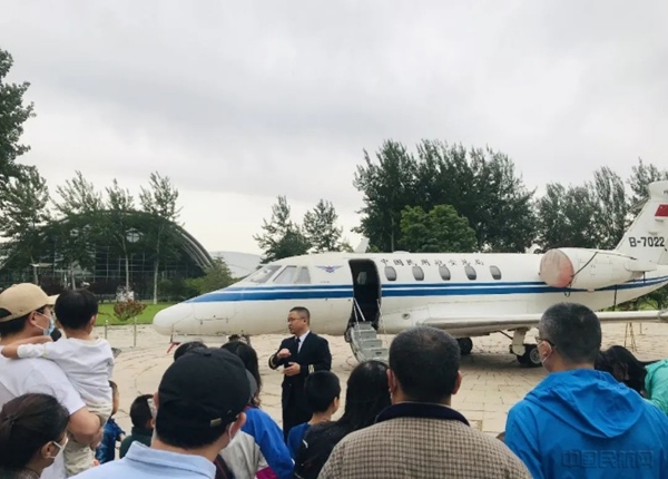 在民航科普嘉年华系列探秘活动中,利用馆藏飞机,让观众登机参观,尤其是在探秘校验飞机活动中,了解校验任务的机组构成以及机场校验飞行的意义后,观众有序地登上奖状Ⅵ型飞机,近距离观察舱内设施和各种旋钮、仪表,在小小的机舱内感受民航科技,探索校验飞行的秘密。