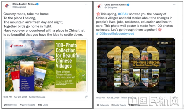 2021年中央企业的海外传播过程中,也非常看重与用户的互动过程,注重收集用户反馈。Facebook上,中国航空集团有限公司通过举行活动赢奖品的模式与用户进行互动,以一个有趣的“上下找不同”小游戏实现了中国文化的宣传,赢得了较高的点赞量、评论量和转发量。Instagram上,中国南方航空集团一则简单的 “机翼上的小触角是什么?”的提问,赢得了“一年内的最多回复量”。Twitter上,中国东方航空集团则是通过一些定期向广大用户征稿的活动,活跃了与受众之间的互动过程。比如2021年6月公示的之前公开征集的一百张中国美丽乡村照片,便成为了“一年内最高转发量和最高点赞量”的第二名。