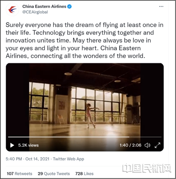 中国东航Twitter平台的推文截图
