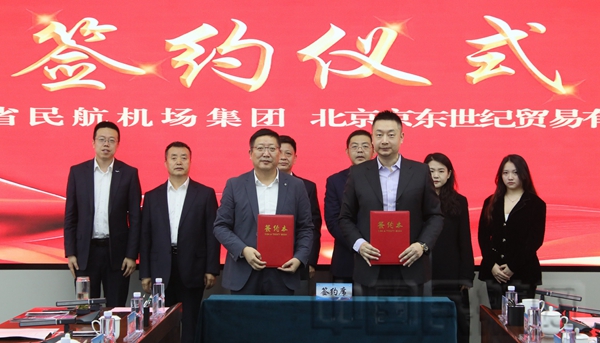 甘肃省民航机场集团与京东集团签署集采商城战略合作协议(岳千惠/摄)