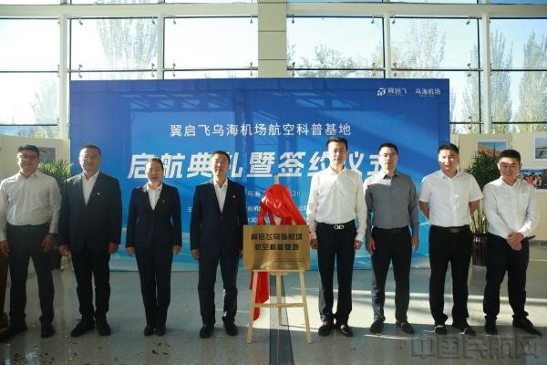 上午8时30分,“翼启飞”乌海机场航空科普基地启航典礼暨签约仪式在机场候机楼内举行。乌海机场总经理张述强、华夏航空控股首席运营官兼华夏云翼联席总裁石心发表致辞,乌海机场副总经理杜旭龙、华夏云翼素质教育事业部总监乔法力签署了合作协议。双方共同为“翼启飞”乌海机场航空科普基地揭牌,这一仪式的完成,标志着乌海市首个依托机场实景资源打造的航空科普研学平台正式投入运营。