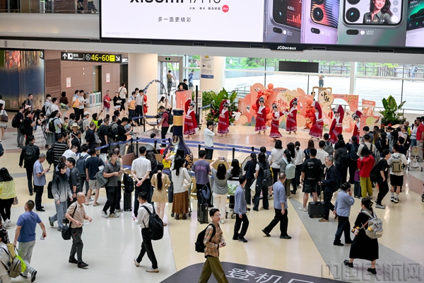 为营造浓厚节日氛围,成都双流、天府两机场组织了“国庆76周年”童声合唱快闪、“高效赴商途 慢品小城韵”联合营销、“山河锦绣·笔赋同欣”“礼乐贺国庆 汉服迎中秋”等一系列主题文化活动。通过节目展演、互动游戏等形式增强旅客参与感与节日仪式感,并结合华表、“76”等国庆元素与成都地标、机场吉祥物进行氛围布置,充分展现了机场的服务温度与文化内涵。(编辑:李佳洹 校对:陈虹莹 审核:程凌)