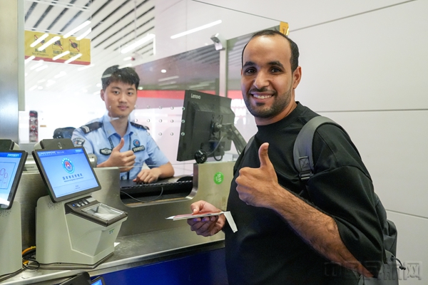 “走进入境大厅就看到了‘广交会专用通道’,通道前有中国移民管理警察热情引导。我从走下飞机到出航站楼,只用了20分钟,‘丝滑通关’太方便了!”办妥入境边检手续,来自德国的机械设备采购商马克斯主动分享通关体验。