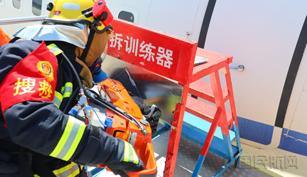 消防员在比赛中进行模拟航空器破拆操作(本文图片均由叶长青/摄)