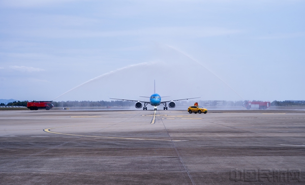 《中国民航报》、中国民航网 记者赵瑜 通讯员魏肖萌、刘亦舒 报道:3月16日,南航C919型国产大飞机“大美湾区号”彩绘机平稳降落在温州龙湾国际机场,顺利完成广州至温州航线首航。航班承运旅客132人次、客座率达82%,飞机穿过民航最高礼仪之一“水门”。标志着C919正式投入温州机场广州快线运营,该航线实现国产大飞机常态化运营。