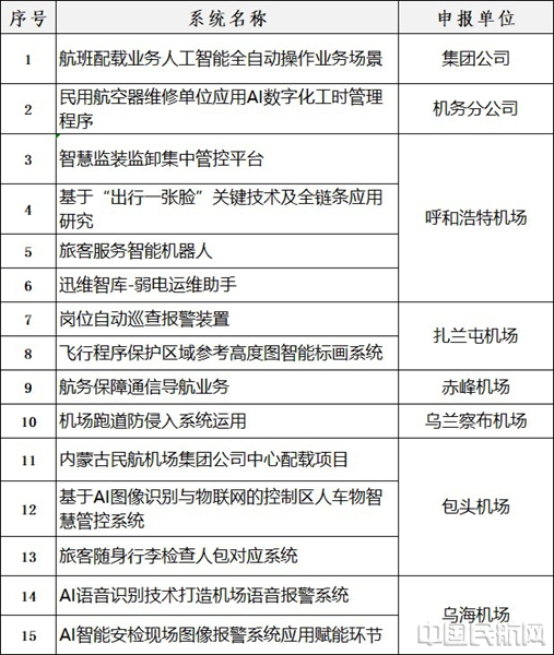 内蒙古机场集团15个科技创新项目入选中国民航人工智能典型案例
