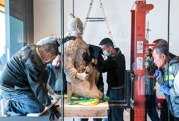 春雨润泽中文脉绵长,跪射俑静立空港,以沉默表达华夏文明的源远流长。4小时20分钟的转运安置后,所有人仍然没有吃上饭,安置好跪射俑便立即开始清理现场。珍宝馆钱,已不断有世界各地口音和语言起伏:“你们不都进呢咋我不行!”、“哋好远,可否睇真啲?bingmayong噻”、“Sir, may I come in?”……一切就绪,珍宝馆熄灯关门,6154独自静待几天后的“他”早已不以为意的盛大瞻仰——上下航班看兵马俑,是仅属于陕西、中国民航魔幻而庄严的现实。(《中国民航报》、中国民航网 记者路泞 摄影 李宜鹏)(编辑:王亚玲 校对:张彤 审核:程凌)