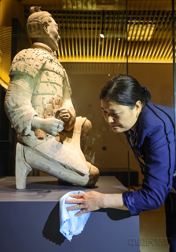 跪射俑特展,是西部机场博物馆继秦公镈、法门寺银熏炉之后的第三轮国宝轮展,在陕西省文物局指导下,集团与秦始皇帝陵博物院反复沟通、严密筹备,从文物点交、专业押运到展柜调试、安防升级,每一个环节都精益求精。