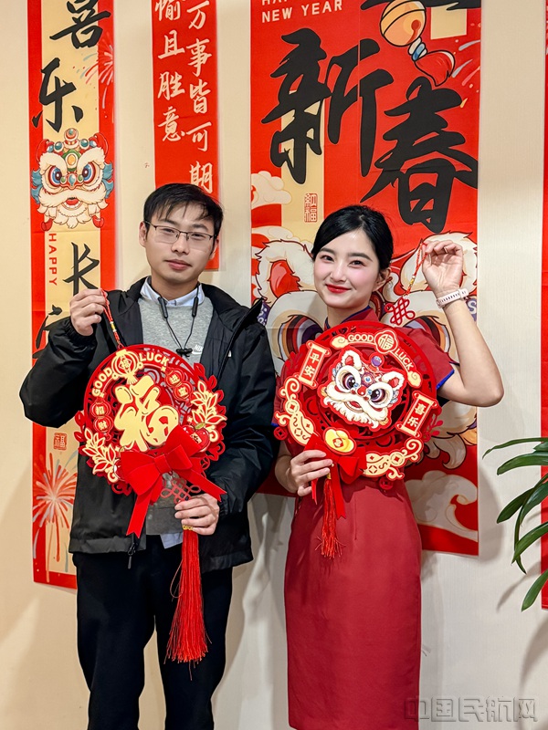 精心布置的套圈游戏区域,充满阵阵欢声笑语,旅客们参与其中,凭借精湛技巧赢取精美礼品,感受新春欢乐氛围。入厅和餐台的心愿墙,设置了书写新年的美好祝愿的区域,旅客写好的福字还能作为一份独特的新春礼物带走,把福气传递到旅途的每一处。值机、行李、中转、登机口均提前准备布置,使广大旅客们沉浸在浓浓的元旦氛围之中,感受新春的甜蜜与温暖。
