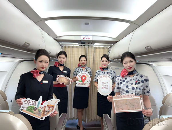 《中国民航报》、中国民航网 记者钱擘 通讯员施阳 报道:“女生们、先生们,今天是9月27日世界旅游日。旅行不仅是愉悦和放松,也是探索和成长,祖国的壮美河山值得您亲临现场。出门旅行必备地图,南京博物院镇院之宝之一的《坤舆万国全图》是世上最早的中文世界地图,我们将通过飞机客舱屏幕为大家播放东航和南博共同为您准备的特别视频,一起深入了解《坤舆万国全图》文物的故事。”伴随着如是机上广播,9月26日-27日,东航江苏公司在南京往返首尔、成都、重庆、广州、长春、贵阳的12个航班上,联合南京博物院开展“世界旅游日”主题航班活动,通过机上特色文旅短片、赠送《世界旅游日南京纪念版飞行日志》、赠送文创等方式,为旅客开启空中文博之旅。