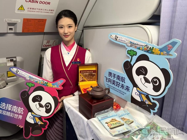 在空地服务中,南航上海分公司推出多项进博会专属服务:乘务组身着旗袍执飞进博主题航班,与旅客开展互动;在浦东机场T2航站楼设进博会专用柜台,为参会人员提供行李优先托运服务;在虹桥机场到达区设“暖心服务驿站”,助力旅客高效提取行李;南航上海明珠休息室新增"水墨传情"彩绘画盘打卡点,营造浓厚参展氛围。