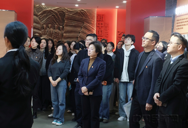 师生党员循着历史脉络,依次参观“正道沧桑、峥嵘岁月、开国奠基、波澜壮阔、民族复兴”五大主题展区,全景式展现了中国共产党领导中华民族从站起来、富起来到强起来的壮阔历程。