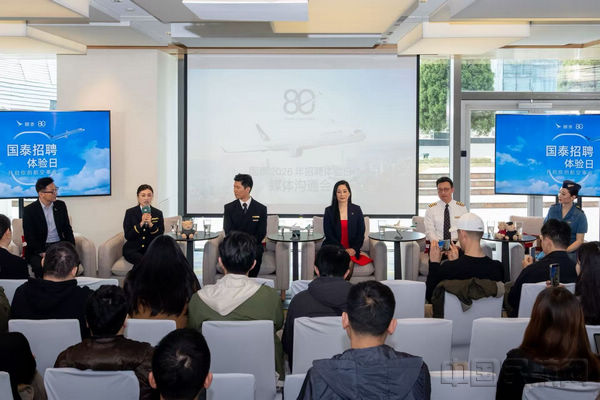 《中国民航报》、中国民航网 记者郑雪、汪洋 报道:“当我知道有机会成为飞行员时,国泰就是我的第一选择”“在国泰,工作不仅是完成任务,而是和团队一起协作、一起成长”“国泰最吸引我的地方,就是它成熟的国际化平台和多元共融的工作环境”……近日,国泰集团2026年招聘体验日首站活动在北京启动,来自管理层和关键一线岗位的员工分享了他们在国泰集团的职场故事。