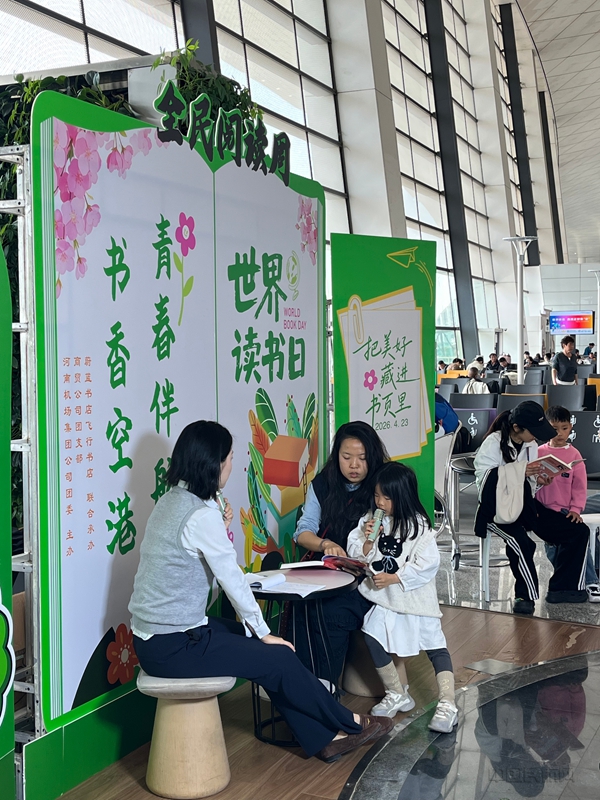 《中国民航报》、中国民航网 记者冯智君 通讯员张晓、刘奕扬 报道:4月23日是“世界读书日”,郑州新郑国际机场T2航站楼图书展区书香浓浓,“书香空港 青春伴航”主题读书活动在此举办。浓厚的文化氛围吸引众多过往旅客驻足参与,大家在候机间隙共赴一场春日书香之约,感受阅读的独特魅力。
