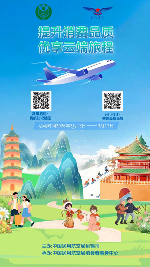 国际民航组织仪表飞行程序专家组会议在京召开 2026-03-27 民航局党组理论学习中心组举行集体学习 2026-03-25 民航局党校2026年春季学期主体班开班 2026-03-19 民航局召开3月安委会全体(扩大)会议 2026-03-17 民航局开展消费者权益日宣传活动 有奖答题!等你来参与 2026-03-15 2026春运|再创新高!2026年春运民航累计运输旅客9439万人次 2026-03-14 民航局“提升消费品质,优享云端旅程”活动等您来 2026-03-12 我国航空公司恢复部分至中东地区航班 2026-03-05